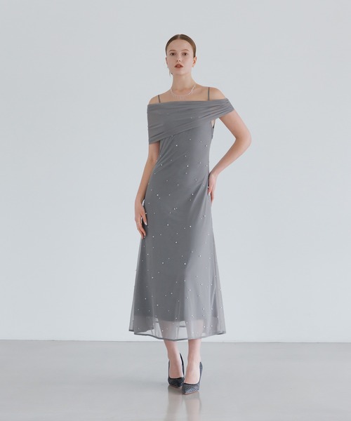 繊細なチュールトップスと、パールを贅沢にあしらった2WAYドレス。