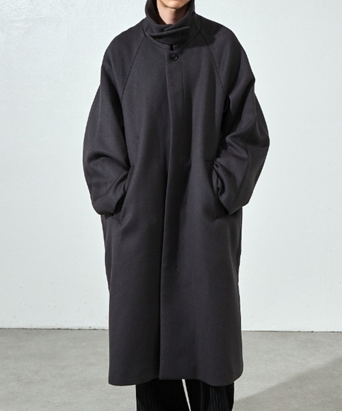 ステンカラーコートをベースに、アームホールから肘部分にかけてのワタリ(幅)を広くし、袖口にかけてはテーパードをかけ、ボリューミーな見た目に。
