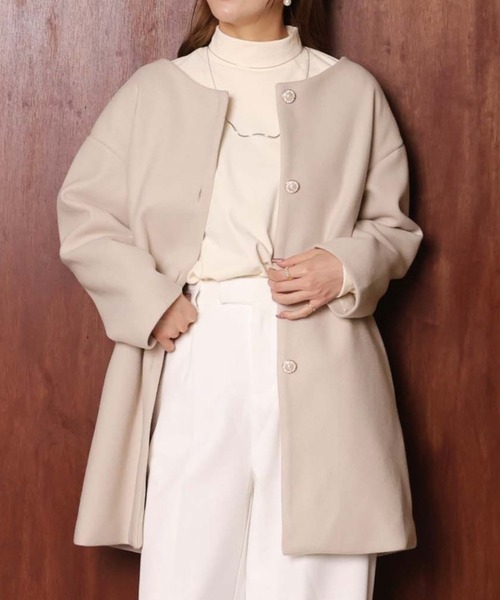 キーワード:ノーカラーコート コート レディース 秋 冬