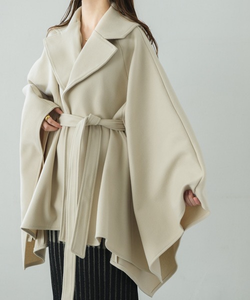 参考商品名:【着物や浴衣・振袖の上からも着れる!】テーラードカラーケープロングポンチョコート