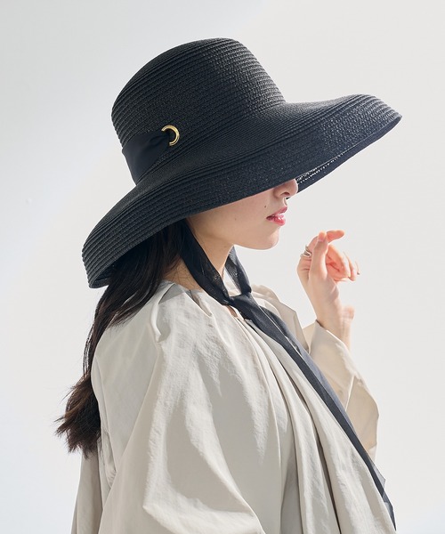 上品なつば広シルエットと、大人フェミニンなリボンディテールが絶妙にマッチした麦わら帽子。