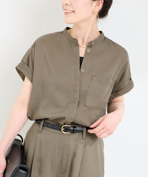 スタンドカラーの比翼仕立てですっきりとしたキレイめに着られるデザインにしており、大人な品のあるアイテムに仕上がっています。