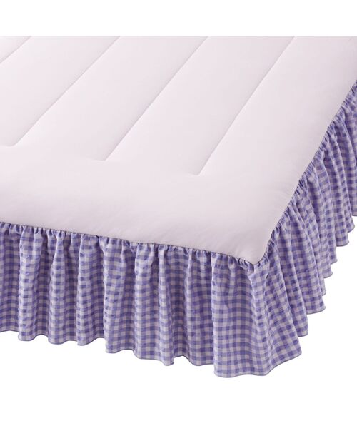 シアサッカー素材と周囲に施したフリルが夏らしく涼やかで華やかなベッドコーディネートを叶えてくれます。