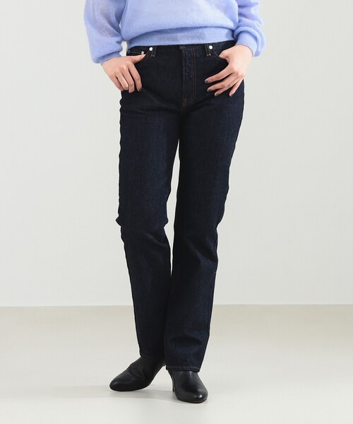 脚線美を引き出す絶妙なテーパードシルエットのデニムパンツ。ファッションモデル〈Amelie Moosgaard〉とのコラボレーションから誕生した1本です。洗練されたムードを演出しつつも、太めのベルトループや粗めの運針など、細かなディテールがクラシックなムードをプラスします。