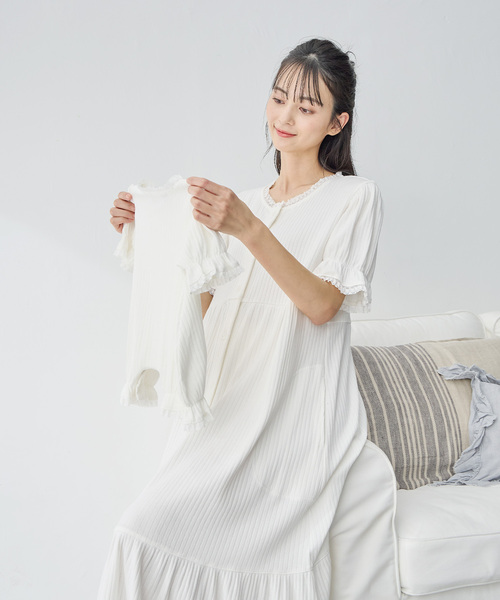 縁取りのレースや裾フリルのボリューム感が愛らしい雰囲気を演出してくれます。