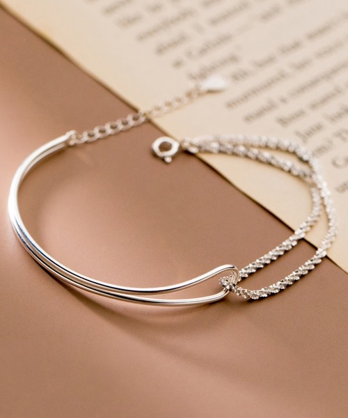 メッシュ チェーン 2連 ブレスレット シルバー ダブル シンプル 韓国 韓国ファッション