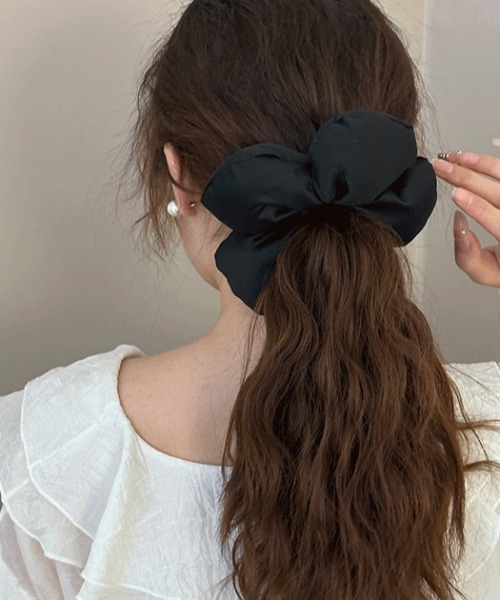 さっと結んだ上からゴムを隠すようにつけるだけでワンランク上のかわいいスタイリングができます♪