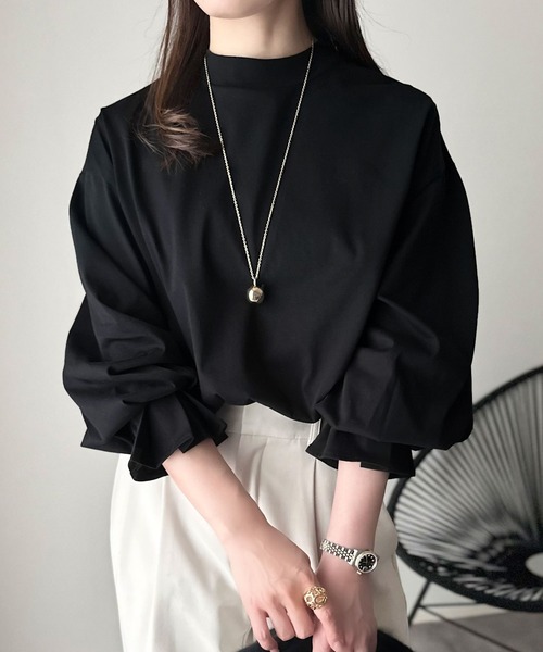 上品な光沢感と立体スリーブで、ゆったりと大人可愛く決まる1枚。