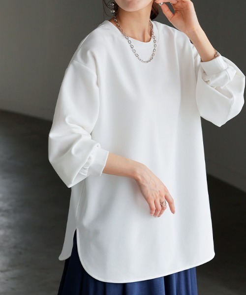 素材の魅力を存分に生かしたシンプルなTシャツライクなブラウスです。