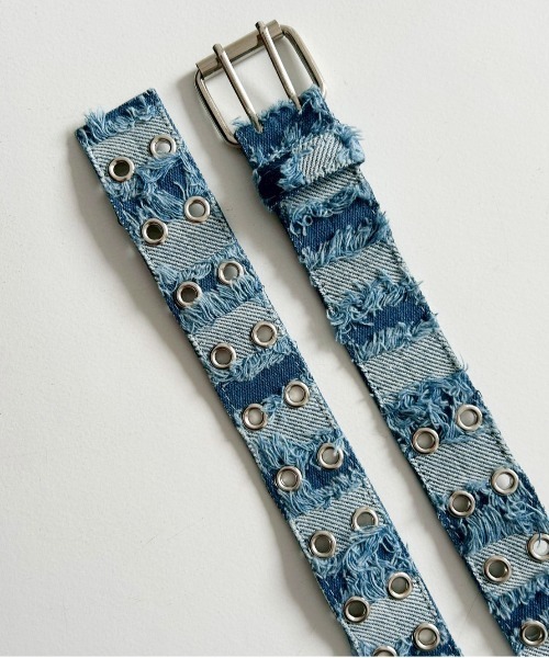 ヴィンテージ感あふれるダメージ加工が魅力のデニムベルト。