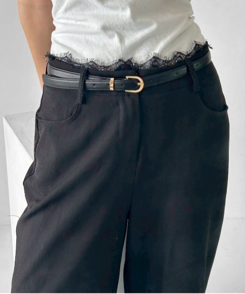 ウエスト周りをさりげなく引き締めてくれる、クラシックな細ベルト。