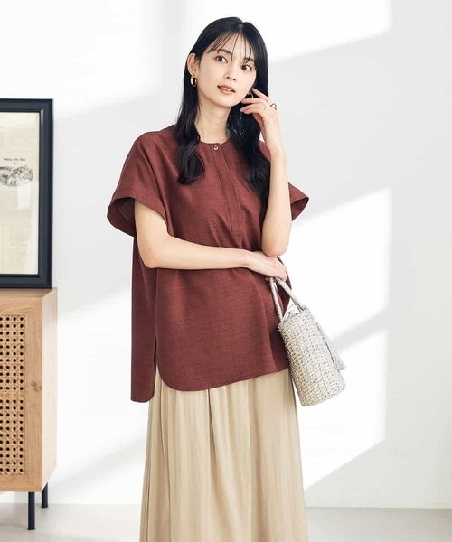 ◆麻調素材で涼しく決まる万能ブラウス◆ 【デザイン】