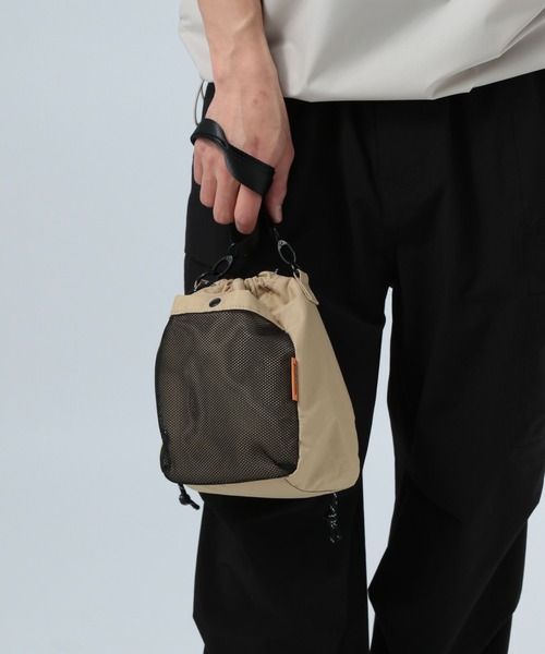 斜め掛けと手持ちの2WAYで使える巾着型バッグ。