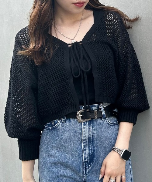 参考商品名:7分袖リボンメッシュカーディガン/アンサンブル