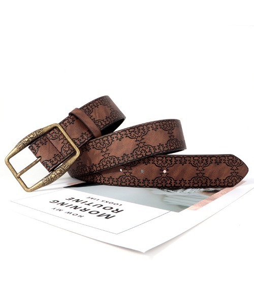 帯革部分にエンボスデザイン加工を施したさりげないお洒落が叶うベルト。