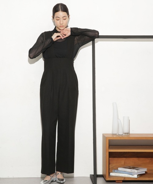 参考商品名:ハイウエストツイードサロペット
