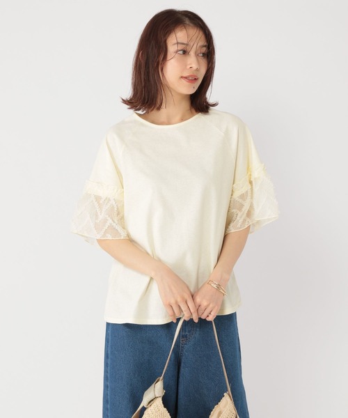 お袖のポンポンレースが可愛いTシャツ。