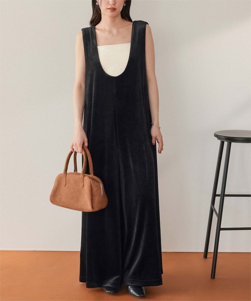 高級感漂うベロア素材で仕立てた、大人の女性にぴったりな上品オールインワン。