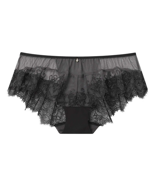 ●フロントの裾にエンブロイダリーレースをほどこし、バック裾はストレッチレースで仕上げた贅沢な印象のデザインショーツ。