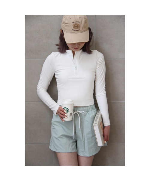 トップスはスタイルを良く見せてくれるジップデザイン、