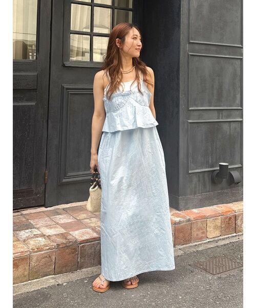 夏にはタンクトップやキャミソールを合わせたスタイリングもおすすめ。