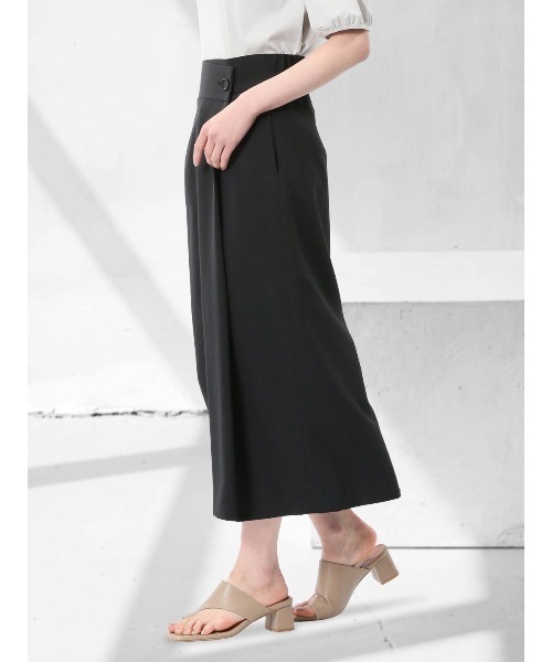 クラシックな印象に仕上げたボタン付きのロングスカートです。アシンメトリーなラップ風デザインがポイント。ウエストはサイドシャーリングで着用ストレスを軽減。後ろファスナー仕様、バックスリット、シームポケット付きです。プライベートやオフィスカジュアルにオンオフ兼用で活躍してくれます。