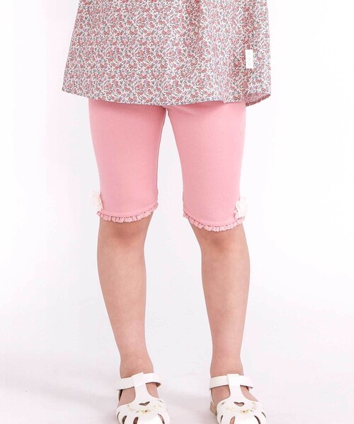カラーごとに違う素材を使用した5分丈の女の子用レギンス。