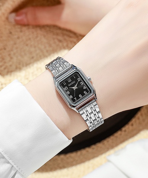 クラシカルでありながら、現代的な洗練を感じさせるスクエアフェイスのレディース腕時計。