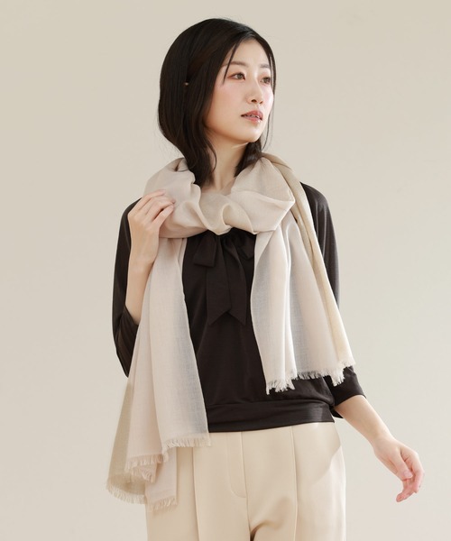 シルクのような光沢としなやかで滑らかな肌触りをもつ『シルケットウール』をストール全体に使用。