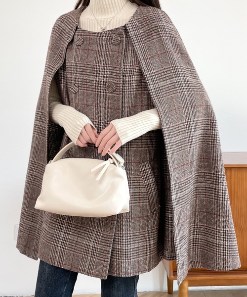 参考商品名:ダブルボタンケープフレアポンチョコート