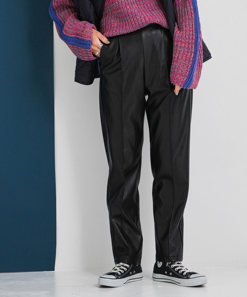参考商品名:フェイクレザーテーパードタックパンツ