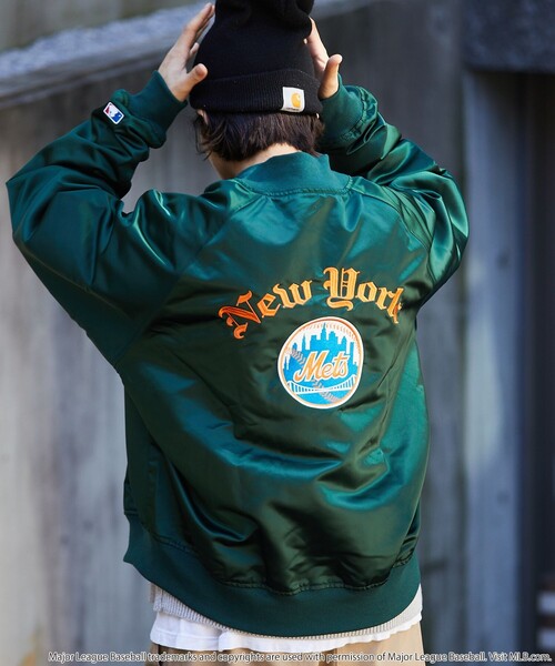 参考商品名:WEB限定 MLB/メジャーリーグベースボール 別注 ビッグシルエット バック刺繍 スタジャン/ワッペン刺繍/Mets