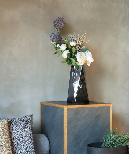 どっしりとした印象とシャープな印象と、2面性を持ち、挿す植物の様々な表情を引き出してくれます。