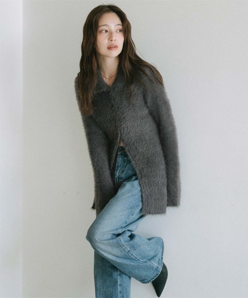 ふわっとした毛足と上品なシルエットで、大人可愛いを叶えるシャギーニットカーディガン。