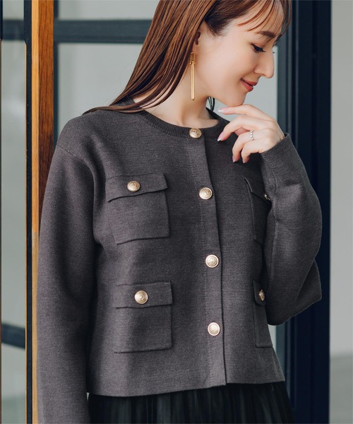 きちんと感と着心地の良さを両立。上品なゴールド釦がアクセントになった、大人のための万能ニットアウター。