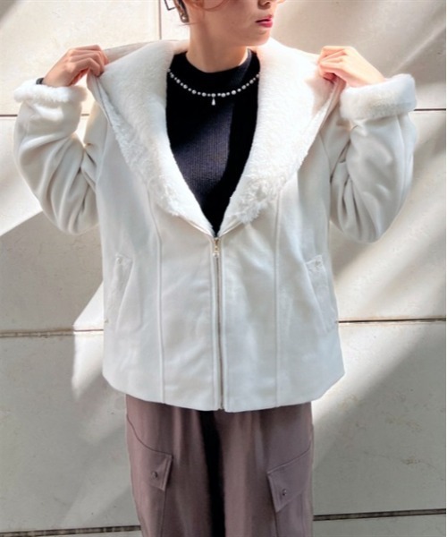 素材:(表地)ポリエステル 90%レーヨン 10%(ファー)ポリエステル 100%(レース)ナイロン 100%(裏地)ポリエステル 100%