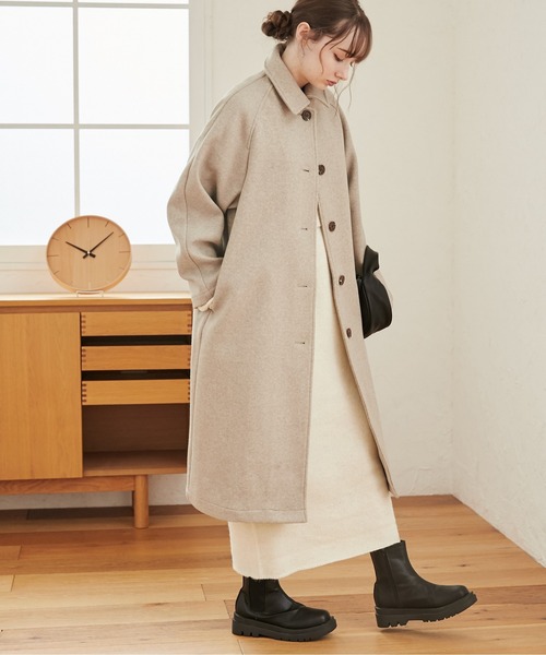 キーワード:ステンカラーコート コート レディース ロング丈 無地 秋 冬