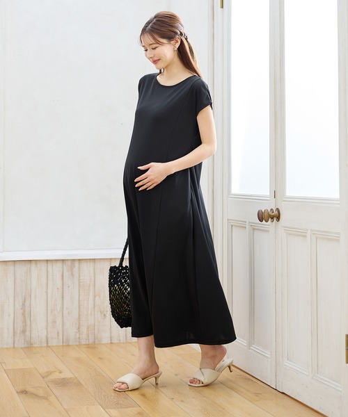 商品名:【接触冷感】スムースAラインワンピース(マタニティ/授乳服)授乳口付き 授乳楽々 妊婦服 産前・産後対応