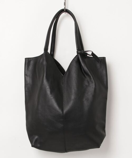 本革を使用した縦長トートバッグ。