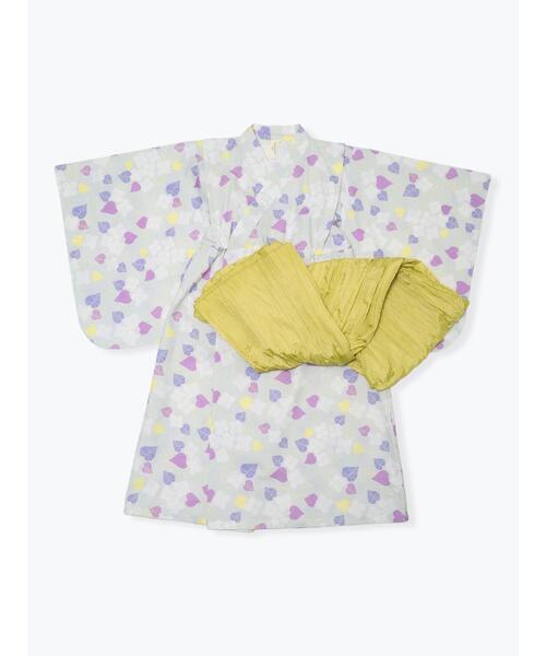 浴衣風デザインのワンピースに、くしゅくしゅっとした帯がセットになっています。