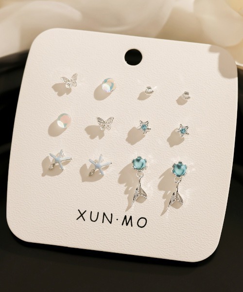 ピアス 「MASHIRO」マルチモチーフピアス 12点セット ビーチ&リボンモチーフ(MA/EK358) メンズ レディース