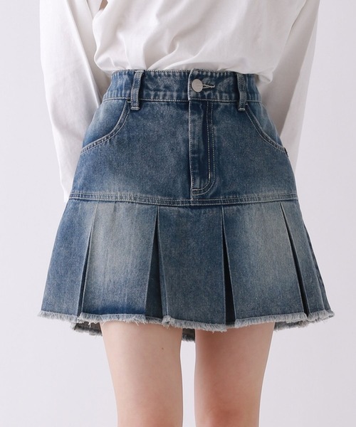裾に向かってプリーツシルエットで脚もスッキリ見え。