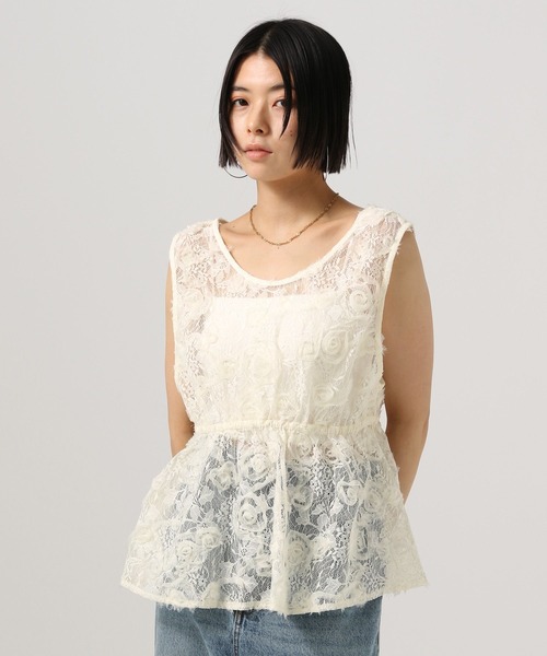カシュクールとクルーネックの前後2WAYで着用可能なレースベスト。