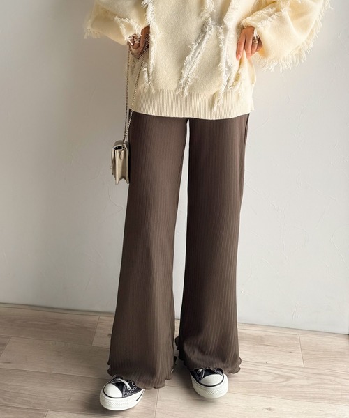 縦ラインを強調するランダムリブで、すらっと見える優秀ボトムス。