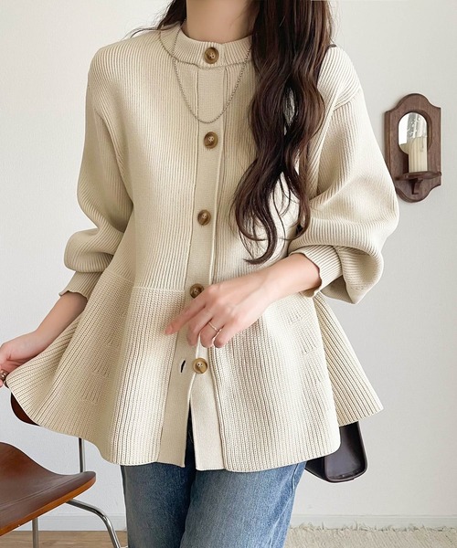 シンプルながらも女性らしいデザインのふんわりカーディガン♪
