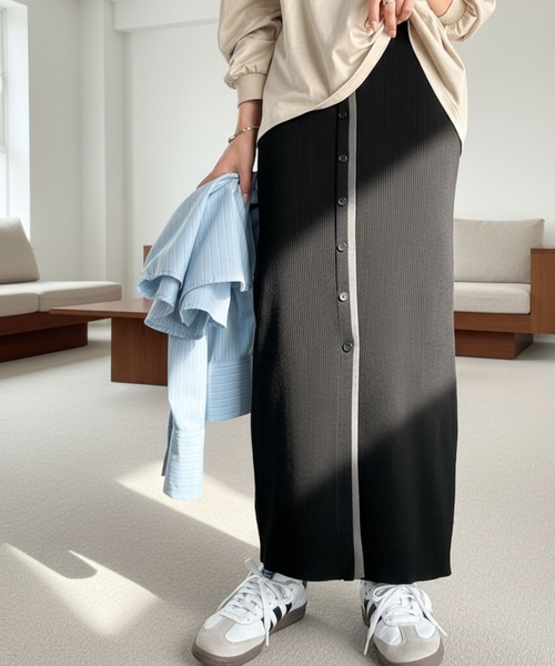 前後2WAYで着回し力抜群のリブスカート。
