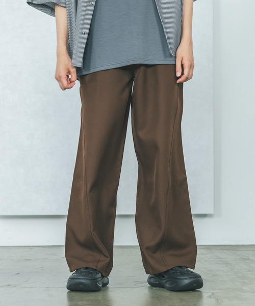 ややフレアになったシルエットで足のラインがきれいに出るパンツ。