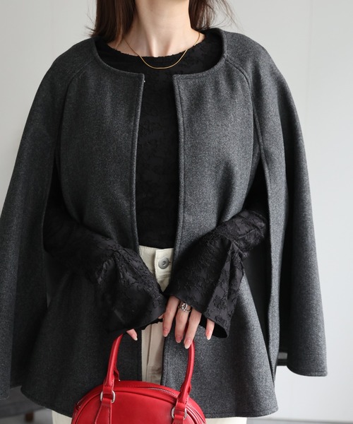 参考商品名:フェイクウール フレア切り替えポンチョ/ケープ