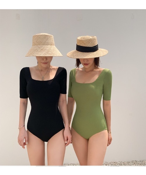 まるで洋服感覚のスクエアネック水着。