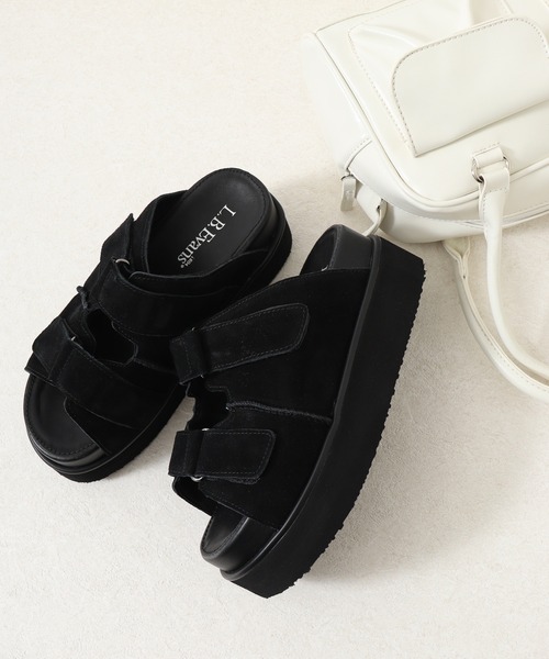 アッパーにスエード素材を使用した厚底サンダル。